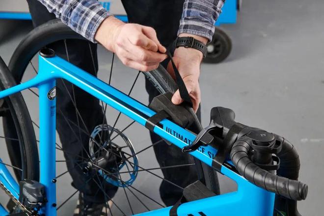 取车时要注意,前轮和车把通常是单独固定的,先把自行车主体、前轮、车把一起拿出来,然后把泡沫、气泡膜这些保护性包装都留好。别觉得这些包装没用,万一以后要把车寄去维修,或者装上车顶架长途运输,这些东西能帮车架避免磕碰。
